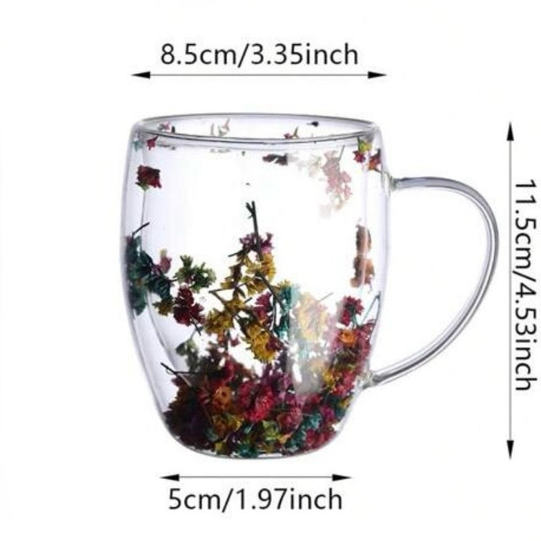 1Pc/350ml Dry Flower Double-Layer Glass Cup Household Coffee Cup With Handle Heat Resistant High Borosilicate Coffee Cup TeaCup #GC1453