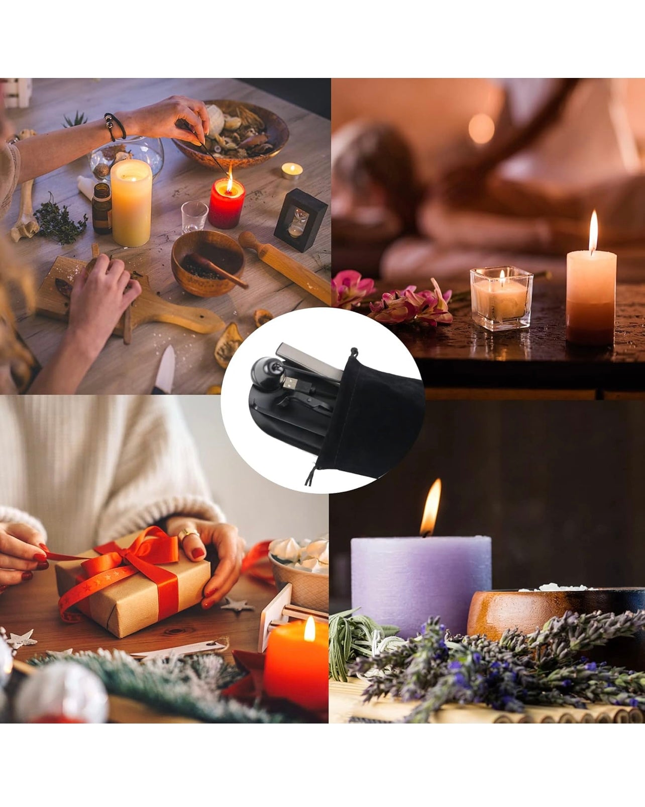 5 in 1 Candle Accessory Set, Candle Wick Trimmer Cutter, Candle Snuffer & Candle Wick Dipper,USB Rechargeable Lighter, Storage Tray Plate for Candle Lover Mom Gift, Candle Care Kit