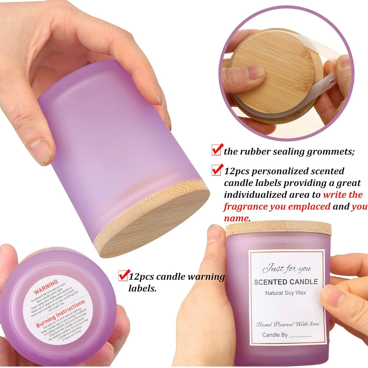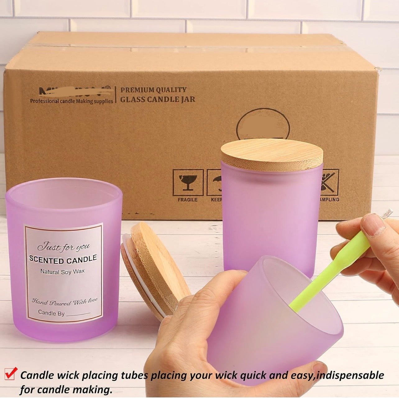 8oz Frosted Purple Glass Jar With Lid #GJ1443
