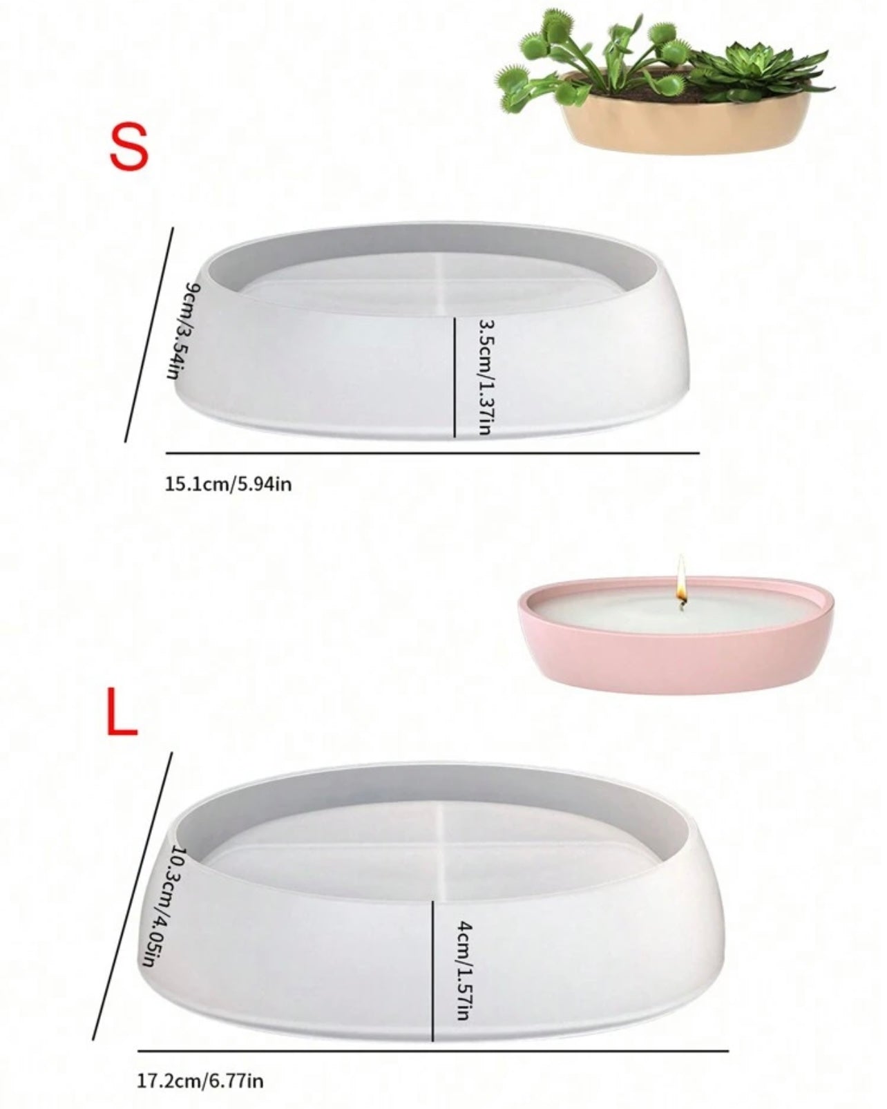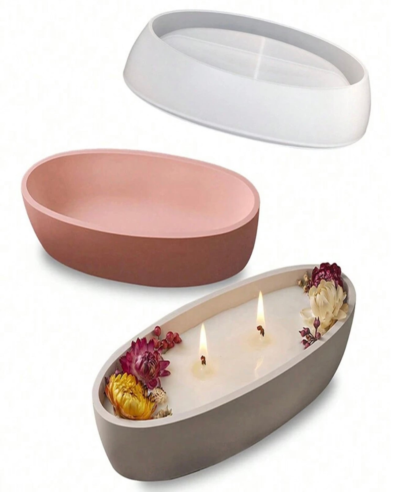 Silicone Mold For DIY Concrete Candle Boat, Oval Cement Planter Pot, Trinket Tray & Candle Cup, Epoxy Resin Molding